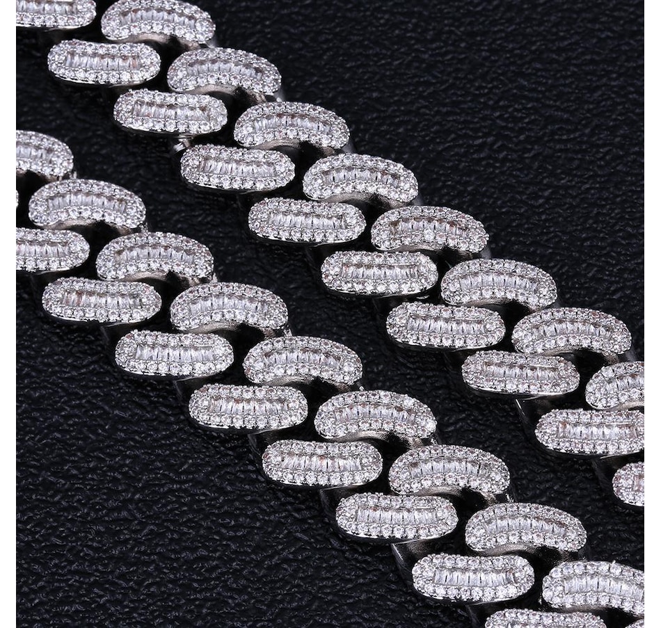 Everlasting Shine: Every Cubic Zirconia stone is hand-selected 5A quality, totally clean and transparent, similar shining with real diamonds.No Color Fading: 0.3μm real 14K gold plating for 5 times, so it won't turn your skin green and assures no color fading for 3-5 years.No Stone Falling: 4 prongs hold every stone closely to avoid stone falling.DetailsMaterialBrass plated with white goldFinish5 times plating for an everlasting shineStone TypeCubic Zirconia with 5A qualityStone Amount2943 / 3262 / 3572Length (inch)18"/20"/22"Width (cm)16mmWeight (g)About 172.4g / 189.8g / 205.4gPackage ContentA chain, a gift box, a warranty card