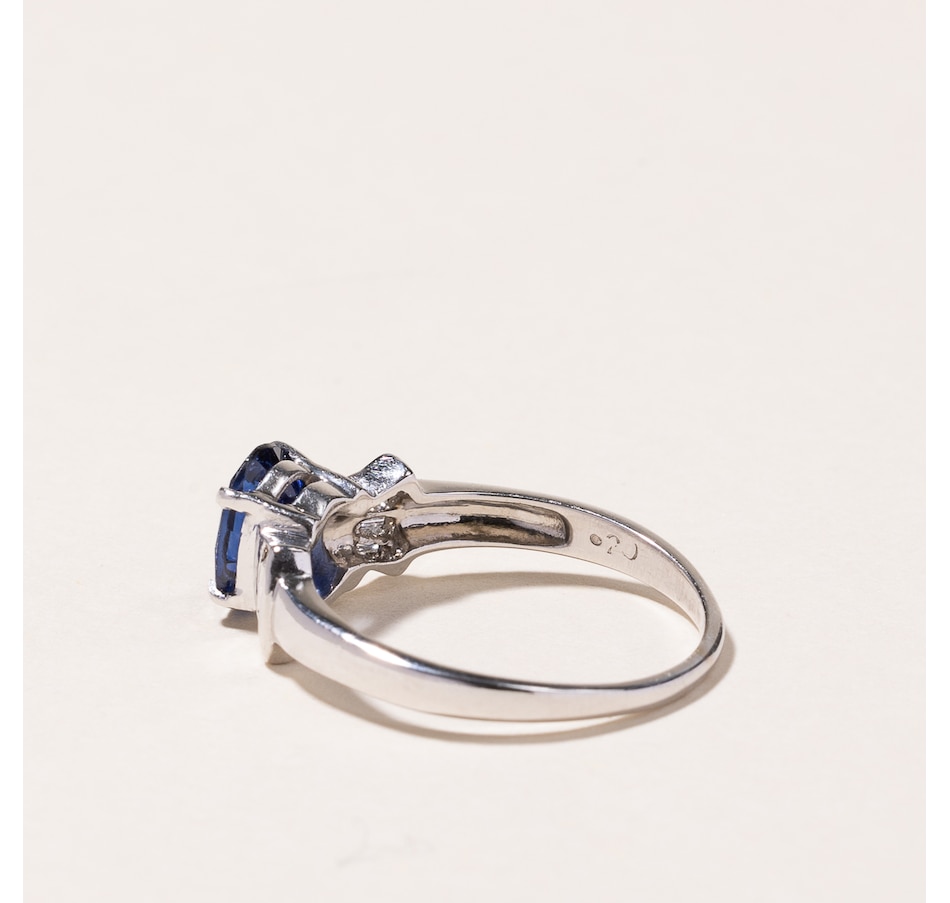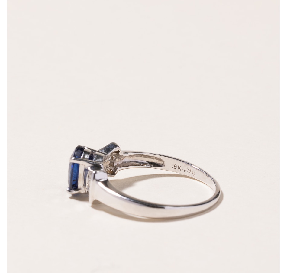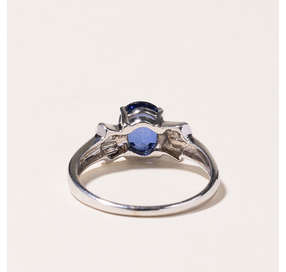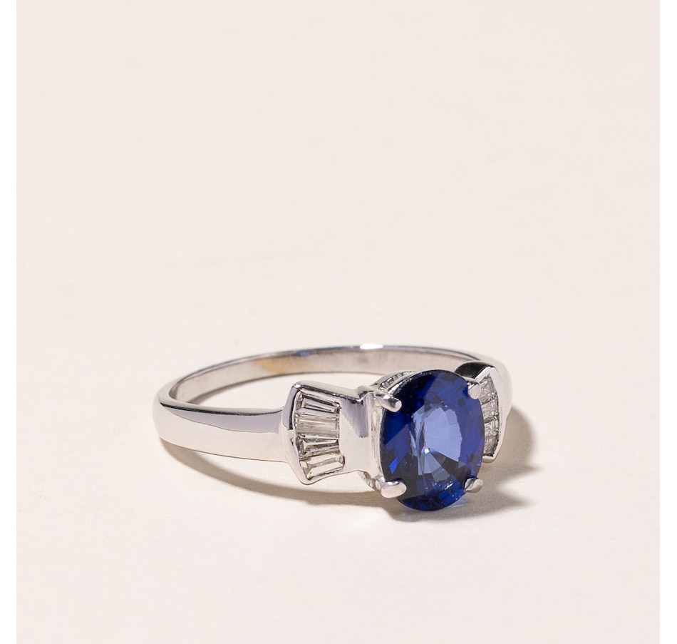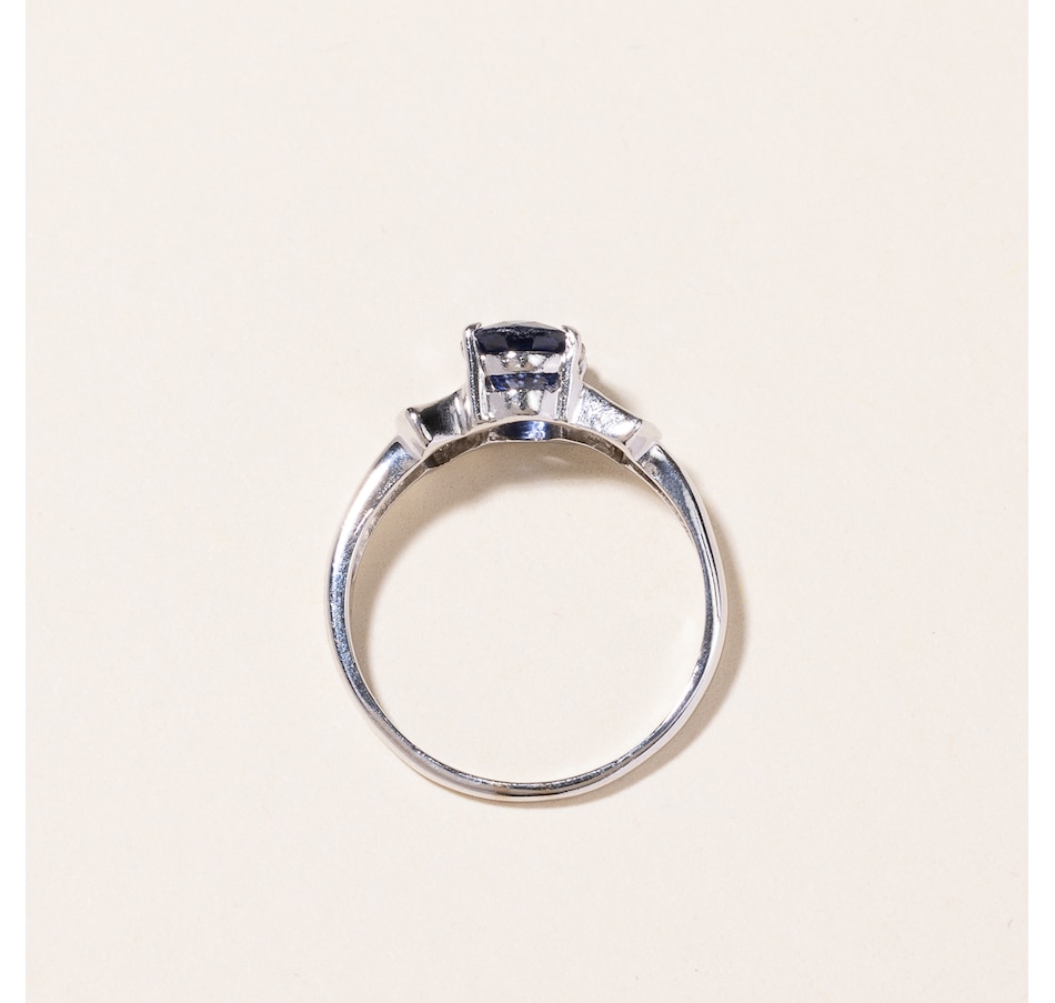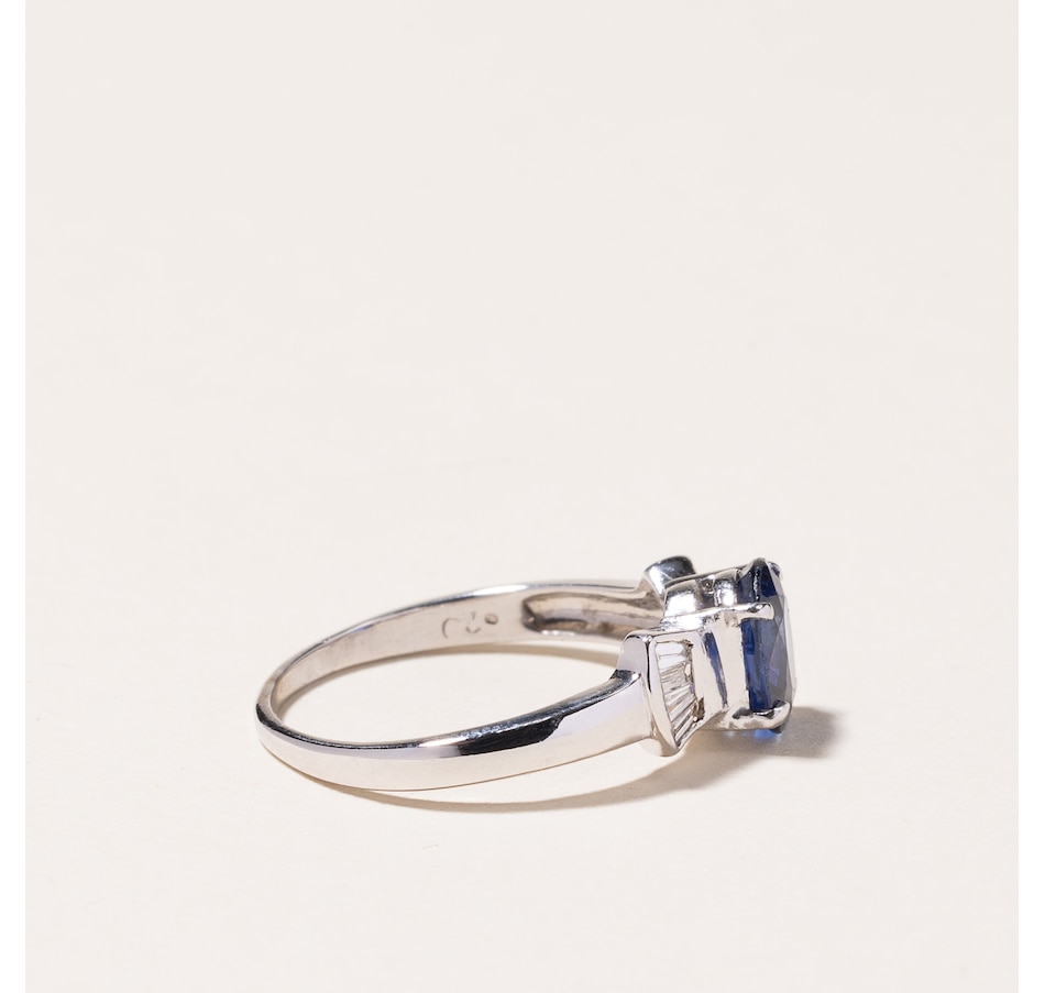 18K White Gold 1.10 Carat Sapphire and Baguette Cut Diamond Ring