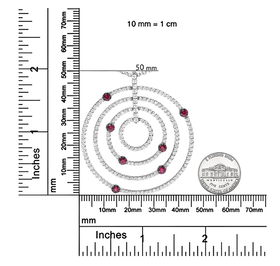 18K White Gold 2 1/6 Cttw Pave Set Diamonds and Red Ruby Openwork Circles 18" Pendant Necklace (G-H Color, SI2-I1 Clarity) - Adjustable up to 16" - 18"