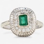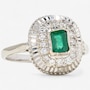 18K White Gold Emerald Cut Emerald and Diamond Ring