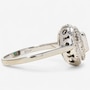The undergallery continues the architectural theme with a pierced circular and bone-like motif that rises in a rhythmic peak-and-valley formation, forming a striking fourth tier that elevates the entire structure. A high-polished band completes the piece, tapering gently toward the top for a graceful finish. This ring likely dates to the late Art Deco or Retro era (circa 1935–1950), when layered, sculptural settings and geometric detailing were in vogue. The tiered, “cake-like” design and milgrain work echo the precision and craftsmanship typical of that period, making this piece not only a stunning statement but also a wearable piece of design history.