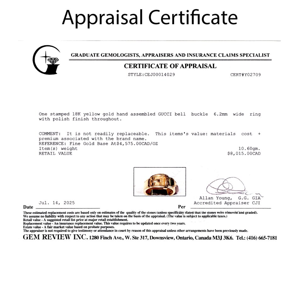 The buckle ring has long symbolized strength, loyalty, and eternal connection, its form reminiscent of both equestrian gear and Victorian sentimentality. Gucci, a brand founded in Florence in 1921, has often drawn on equestrian and heritage-inspired motifs, reinterpreting them through the lens of modern luxury. This ring reflects that legacy, blending timeless symbolism with a fashion-forward aesthetic.