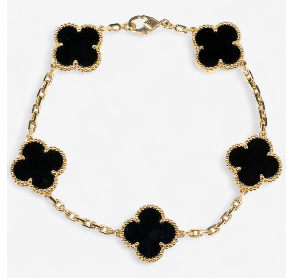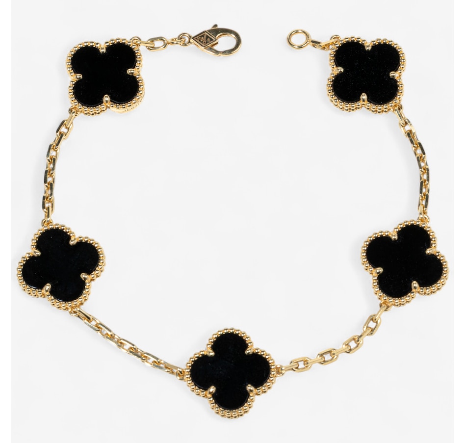 18K Yellow Gold Vintage Alhambra Bracelet with 5 Onyx Motifs