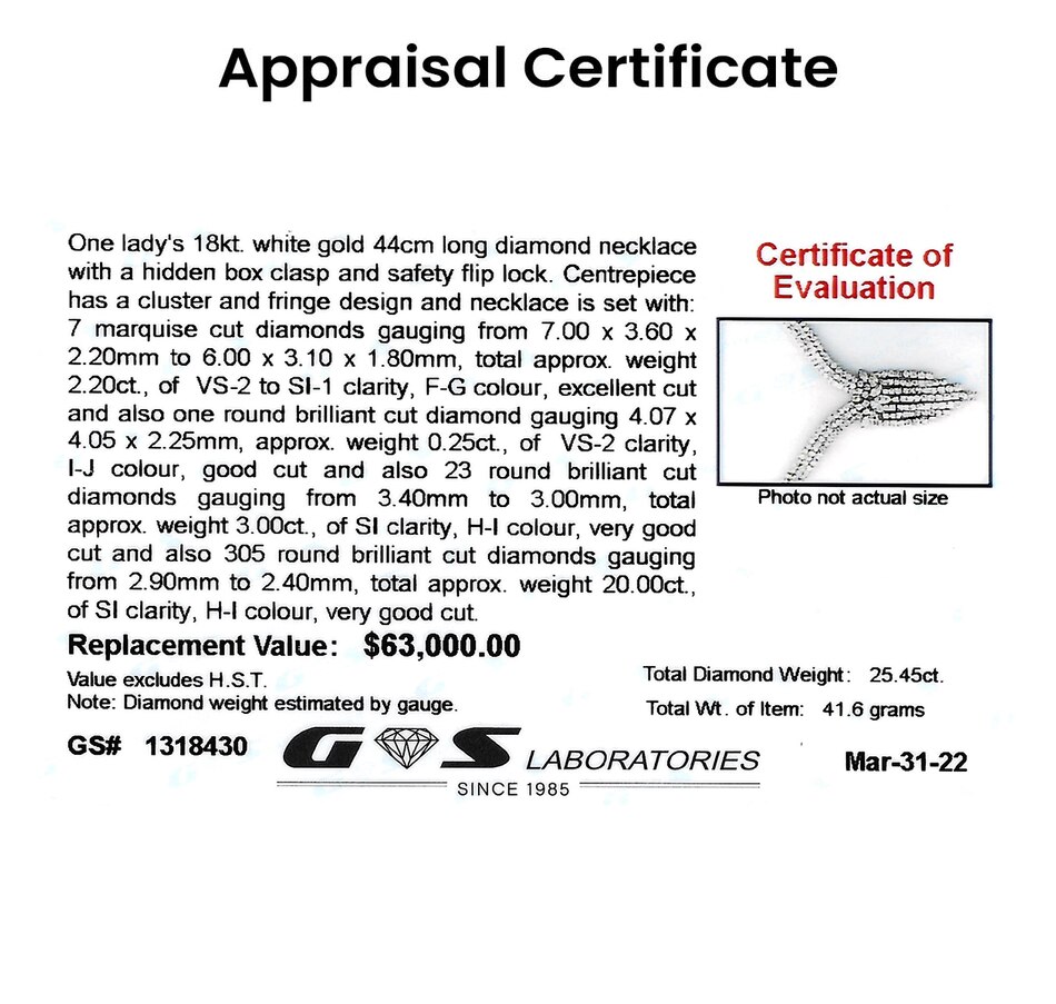 18KT White Gold 25.45 Carat Diamond Necklace with Tassel Drop Centerpiece