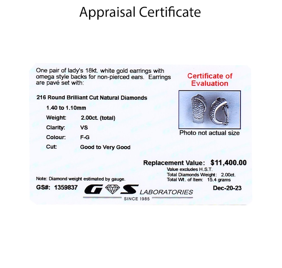 18KT White Gold Omega Back 2.00CTW Pave Diamond Earrings for Non-Pierced Ears