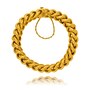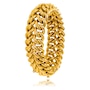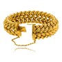 This beautiful yellow gold bracelet is designed with two rows of interlocking curb links placed one atop the other, creating a domed effect. A hidden box clasp with a safety latch and 6.5cm safety chain are attached. When closed, the bracelet tends to bangle in a soft, flexible manner.