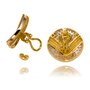 These bold earrings are designed in a circular shape with a seam through the middle and a ribbed yellow gold 'V' design through the center. The background, crafted in white gold, contains 112 round brilliant cut diamonds throughout.