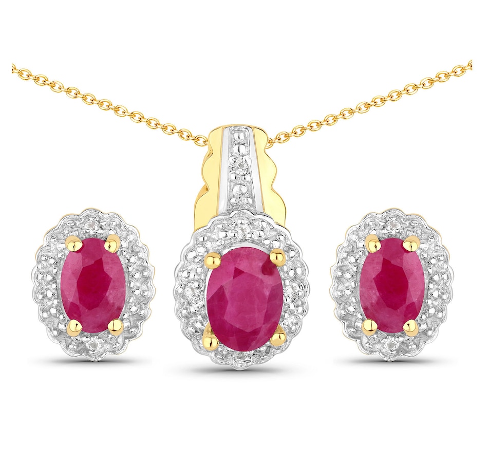 1.94 Carat Genuine Johnson Ruby and White Topaz .925 Sterling Silver Jewelry Set Ruby:Oval/7x5mm 1/0.85 ctw Ruby:Oval/6x4mm 2/1.04 ctw Topaz White:Round/1.00mm 5/0.03 ctw Topaz White:Round/1.00mm 4/0.02 ctw