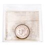 While most business-strike coins from this era show numerous bag marks and other surface imperfections from the manufacturing process and from transportation to the banking system, this 1940 25-cent coin is a premium above-average coin with a full sharp strike and fewer than typical surface marks. The surface may have some modest light golden toning or oxidation, which also attests to its originality. The coin comes sealed in a tamper-proof holder from ICCS. The reverse features the iconic caribou, and the obverse features an uncrowned portrait of King George VI.