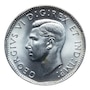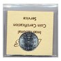 The coin comes protected and security sealed in standard ICCS certification holder, including the assigned grade of MS-66 and a unique certification number. The design features a large "V" standing both for victory and the Roman numeral five, plus an international code message around the rim that means, "We Win When We Work Willingly." The obverse design features the effigy of King George VI.