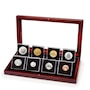In 1997, the Royal Canadian Mint released a Canada Specimen Coin Set, and this was the first time the two-dollar polar bear coin was included, raising the number of coins from six to seven. The specimen set also comes with a specially struck flying loon design to commemorate the 10th anniversary of the first dollar issue in 1987; a regular loon dollar is also included here. The set comes in a mahogany presentation case.