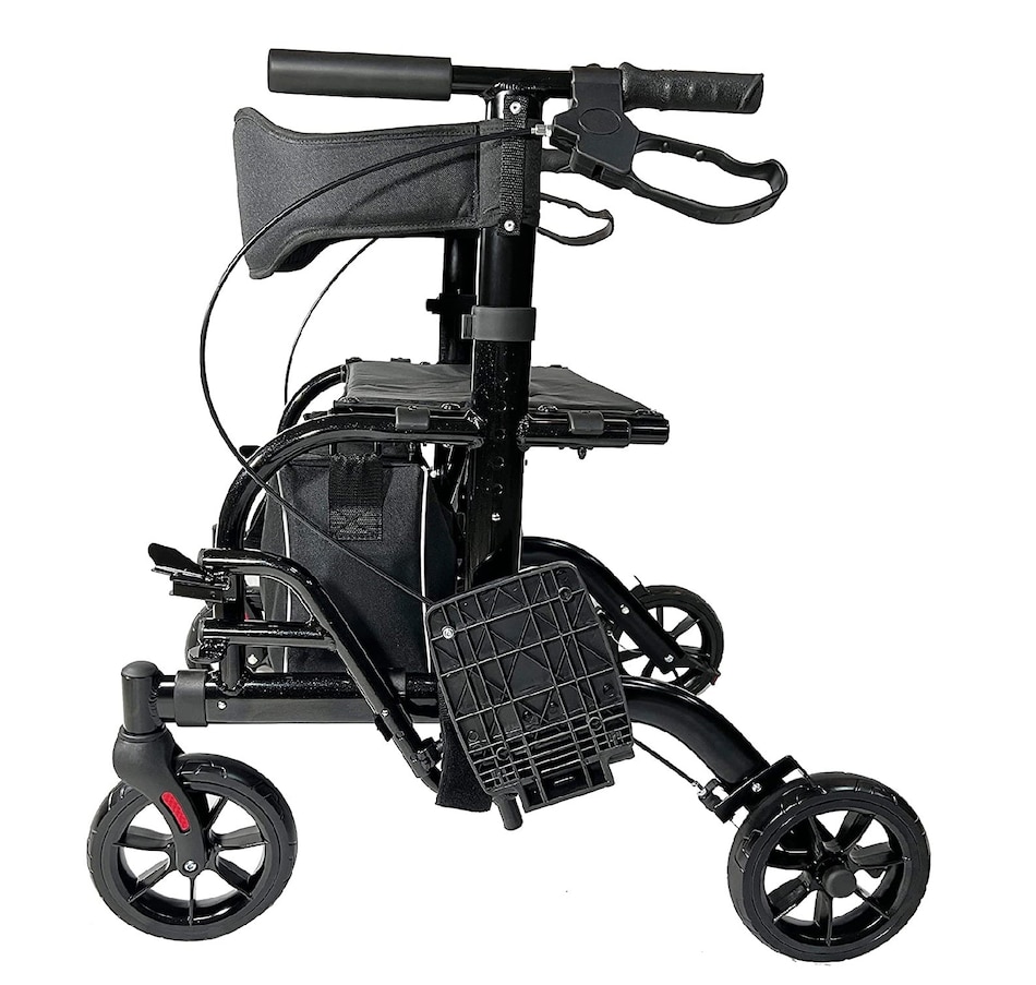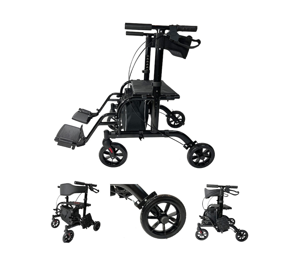 Purstability Combination Rollator can be converted to a transport wheelchair by simply flipping the backrest over and attaching the foot rests. Constructed with strong and corrosion-resistant aluminum, this hybrid rollator can support up to 300 lbs. Quick to assemble without tools, easy and without hassle even for seniors. The large wheels provide easy maneuvering on all terrains, like gravel, grass, carpet, etc. The quick-release loop-lock mechanism adds stability and security when walking, riding or sitting. The extra large padded backrest and seat rest provide additional comfort for the userFeatures:2 in 1 Rolling Rollator WalkerCompact Foldable DesignAll-terrain WheelsDual Brake Design Adjustable Footrests Side Arm RestsModel Number: RTF4Â
