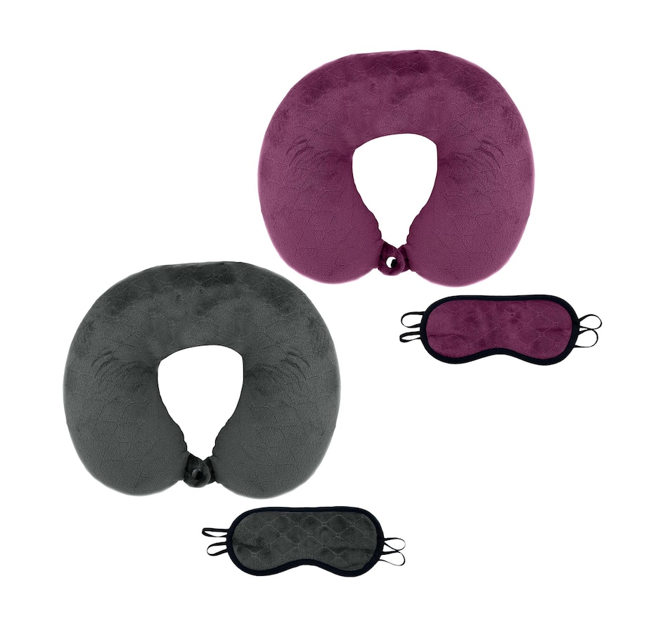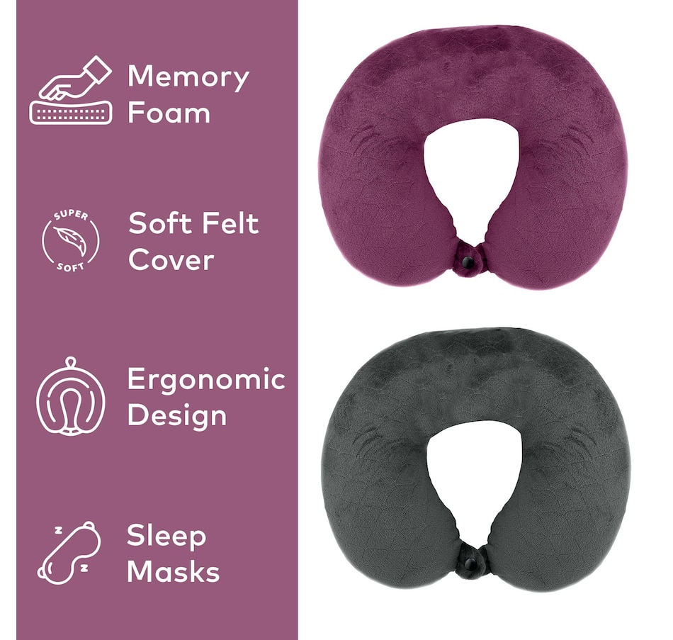 Experience superior comfort and rest on your travels with our  2 Memory Foam Travel Pillows with Sleep Masks by Pursonic. Perfectly designed for couples, these travel essentials provide exceptional support for your neck and head, ensuring a relaxing journey whether you’re traveling by plane, train, or car.Key Features:Premium Memory Foam: Each travel pillow is crafted from high-quality memory foam that adapts to the natural contours of your neck and head. This customized support alleviates pressure points and reduces neck strain, allowing you to enjoy a restful sleep while on the move.Soft, Breathable Cover: The pillows come with a luxurious, soft cover that is gentle on your skin and keeps you cool and comfortable throughout your journey. The breathable fabric ensures maximum comfort, so you can fully relax and recharge.Included Sleep Masks: Enhance your travel experience with the included premium sleep masks, designed to block out light for a deep, uninterrupted sleep. The adjustable straps ensure a snug fit, helping you drift off into peaceful slumber no matter where you are.Ergonomic Design: The ergonomic design of the pillows offers optimal neck support and alignment, helping to reduce the risk of stiffness and discomfort. Whether you're sitting upright or reclining, these pillows support a comfortable posture, making your travels more enjoyable.Perfect for Couples: This bundle includes two travel pillows and two sleep masks, making it the ideal choice for couples traveling together. Enjoy the same level of comfort and relaxation with your partner on every trip.Upgrade your travel essentials with the His and Hers Bundle: 2 Memory Foam Travel Pillows with Sleep Masks by Pursonic. Experience the luxury of personalized support and deep relaxation, making every journey a comfortable and restful experience. Order your bundle today and travel in comfort and style together!