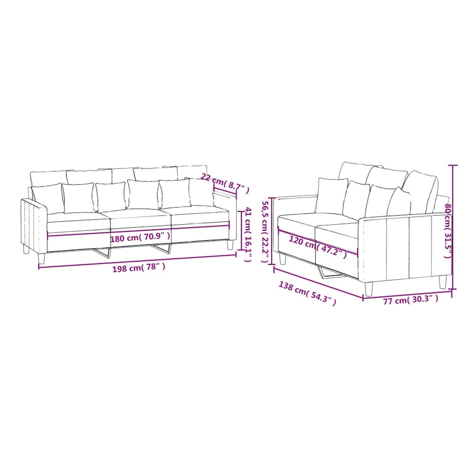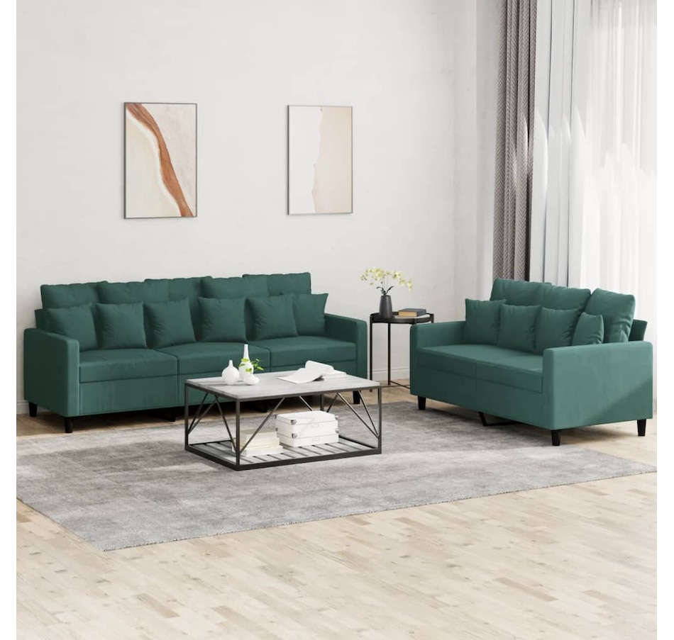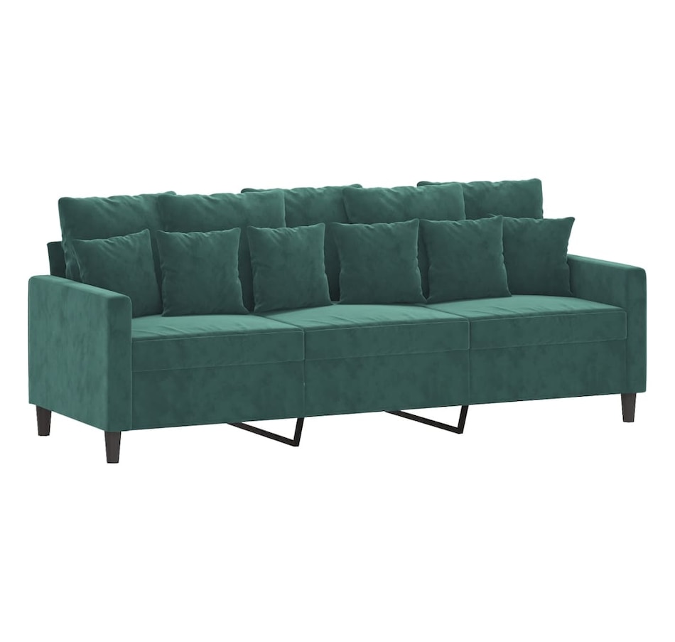 This sofa set is a great place to chat, read, watch TV or just relax. It is intended to be a focal point of your home. Soft velvet: velvet is a soft and comfortable fabric, pleasant to the touch. Robust and stable structure: the plywood and metal structure of the sofa ensures robustness and stability. Comfortable seating experience: The sofa is very comfortable with the well-padded seat, armrests and back pillows.