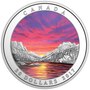 The combined use of different light technologies is truly innovative and unique, with hidden layers revealed under different lighting conditions to transform one's perception of the same engraved and printed scene. Under a black light, coloured inks that are invisible in daylight suddenly emerge; this invisible black light effect adds the perfect life-like glow and intensity to the colours of a fiery sunset, which is beautifully reflected on the rippled surface of the lake below. Moving to daylight or standard lighting, the same scene grows seemingly dimmer in keeping with the fading light at dusk, after the sun has set; shadows seem to grow long over the engraved landscape, while the dark scarlet and purple colours of the sky overhead and in the water below show darkness is creeping in. Once the coin has been sufficiently exposed to light, viewing the coin in the dark reveals yet another aspect of this outstanding design: the use of glow-in-the-dark technology that recreates a night-time phenomenon in this same setting, where moonlight spills out from between the clouds and faintly illuminates the landscape below.