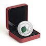 This colourful, $20 proof fine silver coin features a crystal-encrusted bright-green drusy stone, recalling the glorious forest canopy at the height of summer. Designed by Canadian artist Tony Bianco, the coin features a cluster of birch leaves with a sparkling drusy leaf emerging from the engraved silver cluster, seeming to burst out of the image alongside a clutch of catkins. The image is encircled by an ornate Art Nouveau–style frame of curled branches and stylized foliate shapes. Variations in finishing work with intricate engraving to give the design depth and texture. The reverse is engraved with the face value of "20 dollars" and the date "2017." The obverse features "Canada" and the effigy of Her Majesty Queen Elizabeth II by Susanna Blunt.
