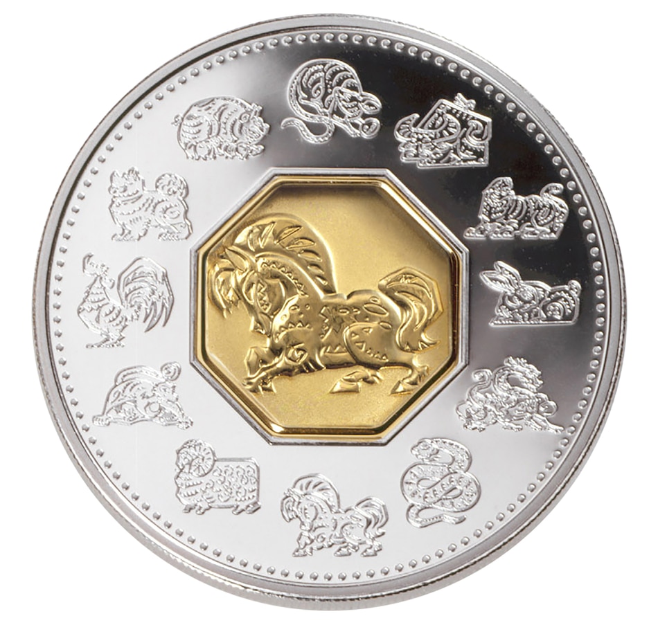 Centuries ago, the Chinese invented a calendar based on the lunar, rather than the solar, cycle. In 1998, Canada inaugurated a remarkable series of coins, designed by Harvey Chan and engraved by José Osio, featuring the animal symbols of Chinese astrology based on the lunar calendar. These symbols roughly approximate the signs of the zodiac in western culture, however they denote years instead of months. In 2002, the Royal Canadian Mint continues production of the annual series with a coin commemorating the Year of the Horse. All 12 of the lunar animals (the rat, the ox, the tiger, the rabbit, the dragon, the snake, the horse, the sheep, the monkey, the rooster, the dog, and the pig) will appear in a circular arrangement around the rim of each coin, with a different animal highlighted each year in a central cameo.