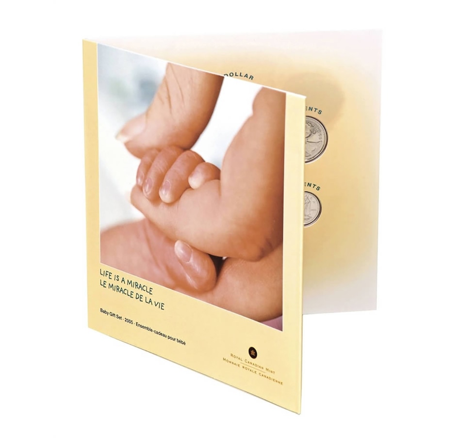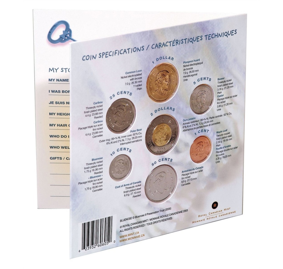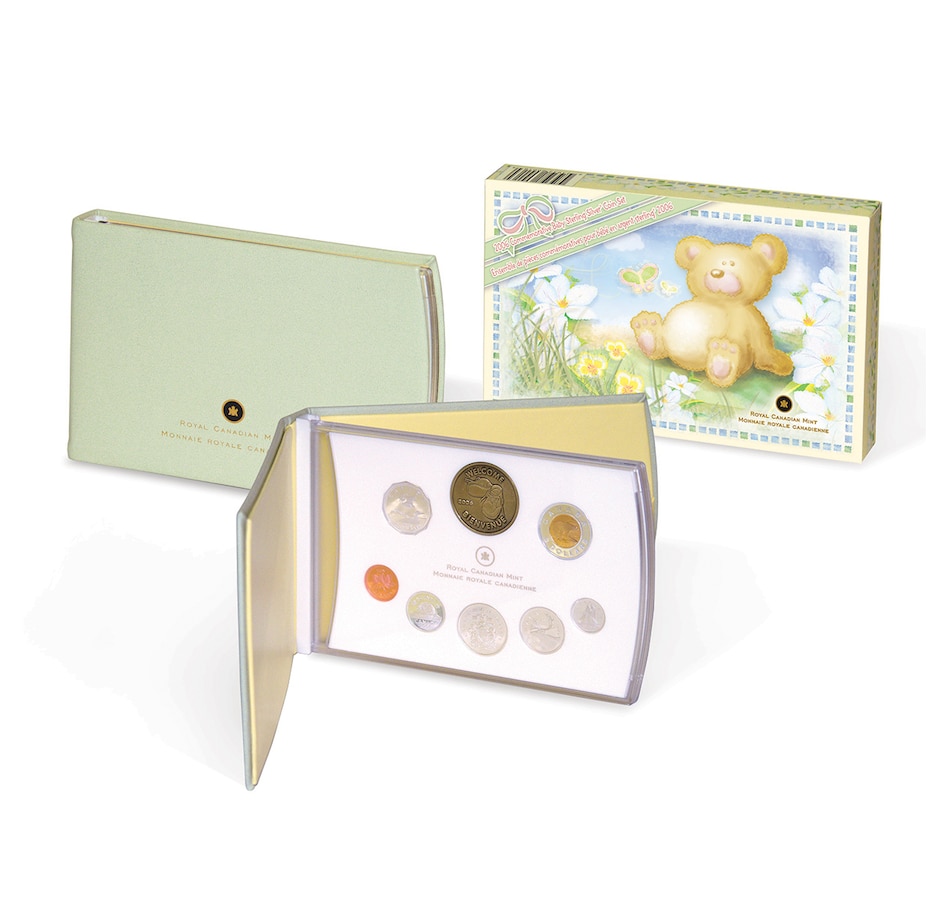 This seven-piece collection includes all of the 2005 coins from the one-cent coin to the two-dollar coin in specially struck numismatic uncirculated condition. The coins are attractively housed in a cute baby set display presentation. The low-mintage 50-cent coin is also included in this set.