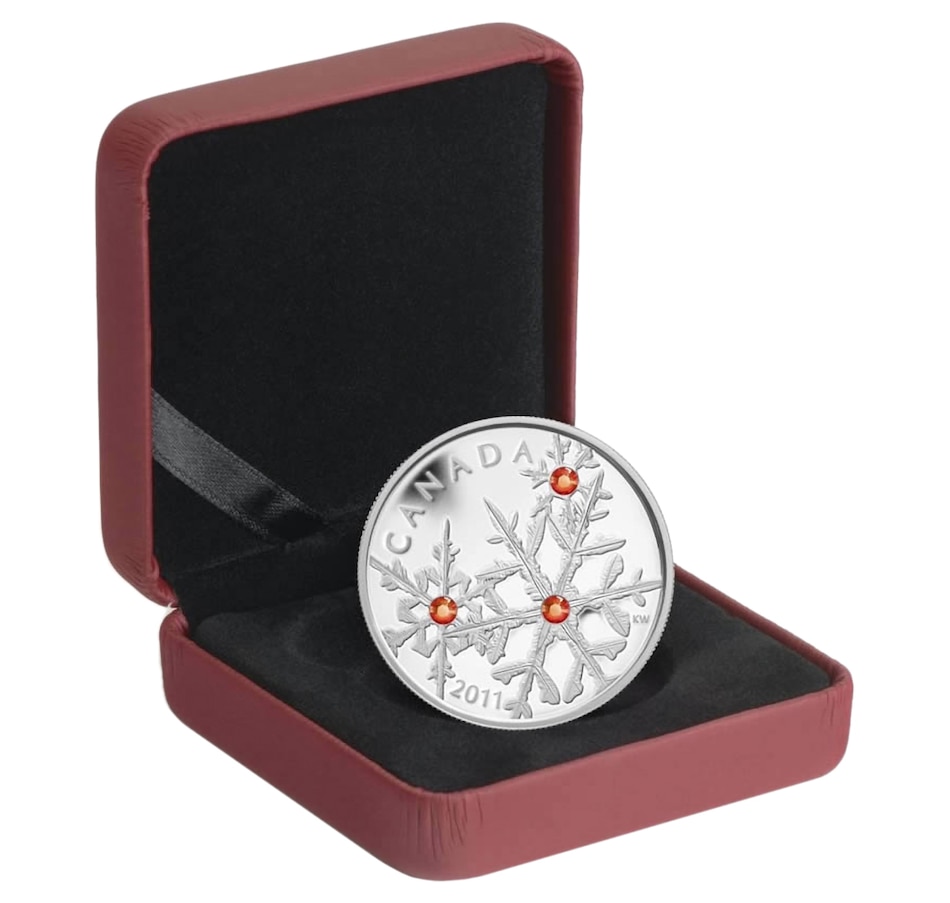 This stunning coin captures the sparkle and allure of one of nature's most transient beauties, freezing it in time for you to enjoy all year round. Delicate snowflakes reveal the infinite diversity of crystalline sculptures that fill the air during a snowfall.