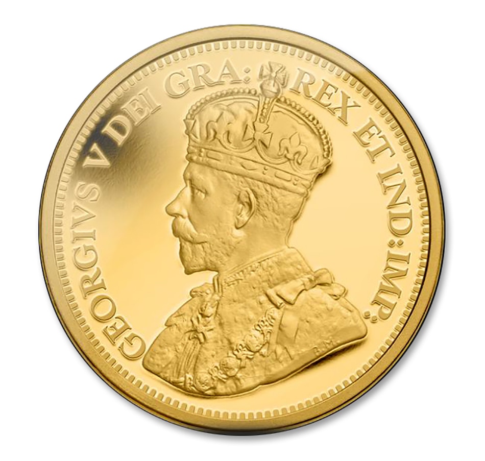 This edition depicts the shield bearing the provincial arms of the four provinces forming the original Dominion of Canada: Ontario, Quebec, New Brunswick and Nova Scotia. A double date (1912-2012) has been added to highlight its centennial year. The obverse bears the effigy of King George V. This stunning 5-ounce pure gold coin features stunning elements of the 1912 original design. The coin is encapsulated and presented in a maroon clamshell case, lined with flock and protected by a black sleeve.