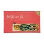 The souvenir sheet features a jade snake coiled into the lucky number 8, the international-rate Year of the Snake stamp in brilliant colours of red and gold. A clear foil layer on the background elements of the stamp gives the illusion of shimmering water. The characters on the left side announce the Year of the Snake and welcome the coming return of spring.