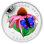 Designed by Canadian artist Maurice Gervais, the reverse image centres on a stunningly rendered purple coneflower (Echinacea purpurea) bloom. The engraved and painted flower's instantly recognizable red-orange tubiflora centre and bright purple petals sit atop a realistic green stem with two smooth leaves.