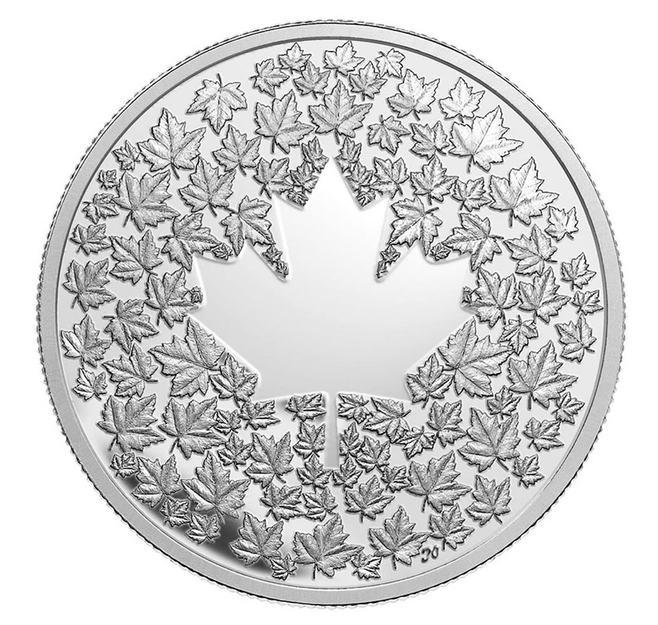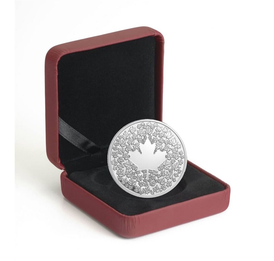 The maple leaf has served as a symbol of pride and national identity for Canadians dating back to more than 100 years before Confederation. For 2013, the Royal Canadian Mint has taken this classic symbol and created a new three-dollar collector coin with an artistic modern image in pure silver. The design features a unique 3D impression of a large maple leaf surrounded by over 100 smaller maple leaves. The back is engraved with the word "Canada," the date "2013" and the face value of "3 dollars." In addition to its presence on the national flag, various provincial flags and coats of arms, the maple leaf has been featured on most Canadian coins from 1858 to 1936, and on Canadian one-cent coins from 1858 to the final issue in 2012.