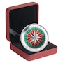 This is the very first coloured coin from the Royal Canadian Mint to be struck in ultra-high relief, produced using a quadruple striking process. It also uses an advanced "sheer effect" colourization technique, an effect that makes the vibrant colours glimmer under the light. The ultra-high-relief striking process lends extra depth to the star in the centre of the coin, which spectacularly emulates a traditional indented glass ornament.