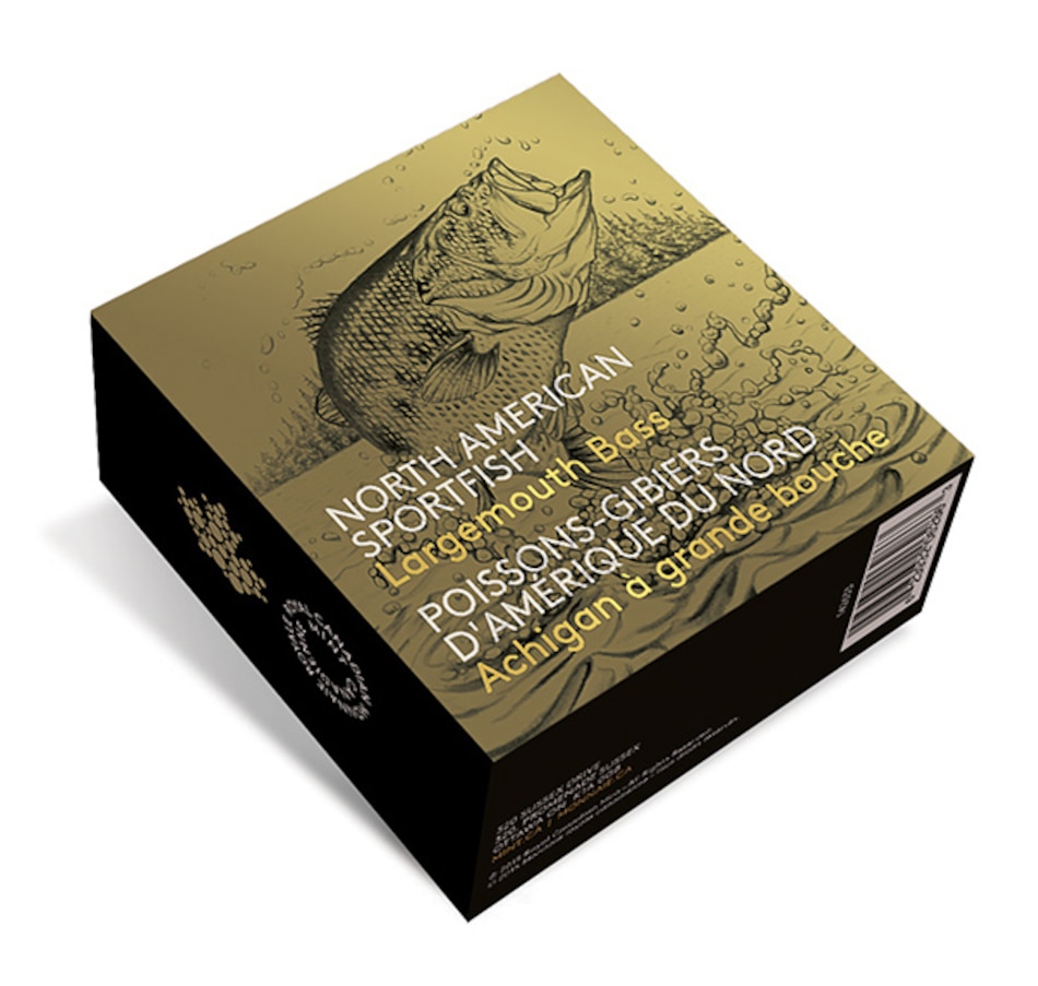 This beautifully detailed fine gold coin is struck with an arresting image of North America's most popular sport fish as it jumps out of the water. Every facet of the bass has been carefully sculpted and accented with a variety of polishes to bring this stunning coin to life.