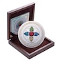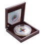 The images of a cross, anchor, pigeon and the wedding rings harmonically correspond with the connotations of each colour. Additionally, sincerity of best intentions is reflected by the highest purity of silver. This unique silver coin is stored in an elegant wooden presentation case adorned with an exquisite golden pattern.