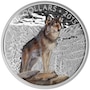 The reverse image by Canadian artist Maurade Baynton features a lone wolf perched on a rocky slope. Here, the Alpha wolf holds a steely gaze as it surveys its remote territory and the horizon beyond the image field. Behind the wolf, a mountain range looms over the river that winds through the forest valley below, with tall timbers that only add to the majesty of this natural setting. uardian of its territory, the wolf is a fearless hunter that relies on its remarkable intelligence, and maintains its reputation as an apex predator. It also plays an important role in the biodiversity of the remote areas it inhabits, from Labrador to British Columbia and north.