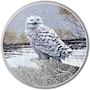 The reverse image by Canadian artist Douglas Liard features a snowy owl after the first snow. Intricately engraved and enhanced with vibrant colour, this unique close-up allows a view of this creature's remarkable features, from its rounded head and black bill to the down-covered legs and toes. Perched on a dried piece of wood in a rolling field, the owl's brown-barred white plumage allows for an element of camouflage amidst its natural surroundings—particularly as the softly falling snow blankets the landscape. Using its acute hearing, the snowy owl has detected our intrusion and has swiveled its head to spy the viewer with the big, yellow eyes that help it seek its prey throughout the seasons.