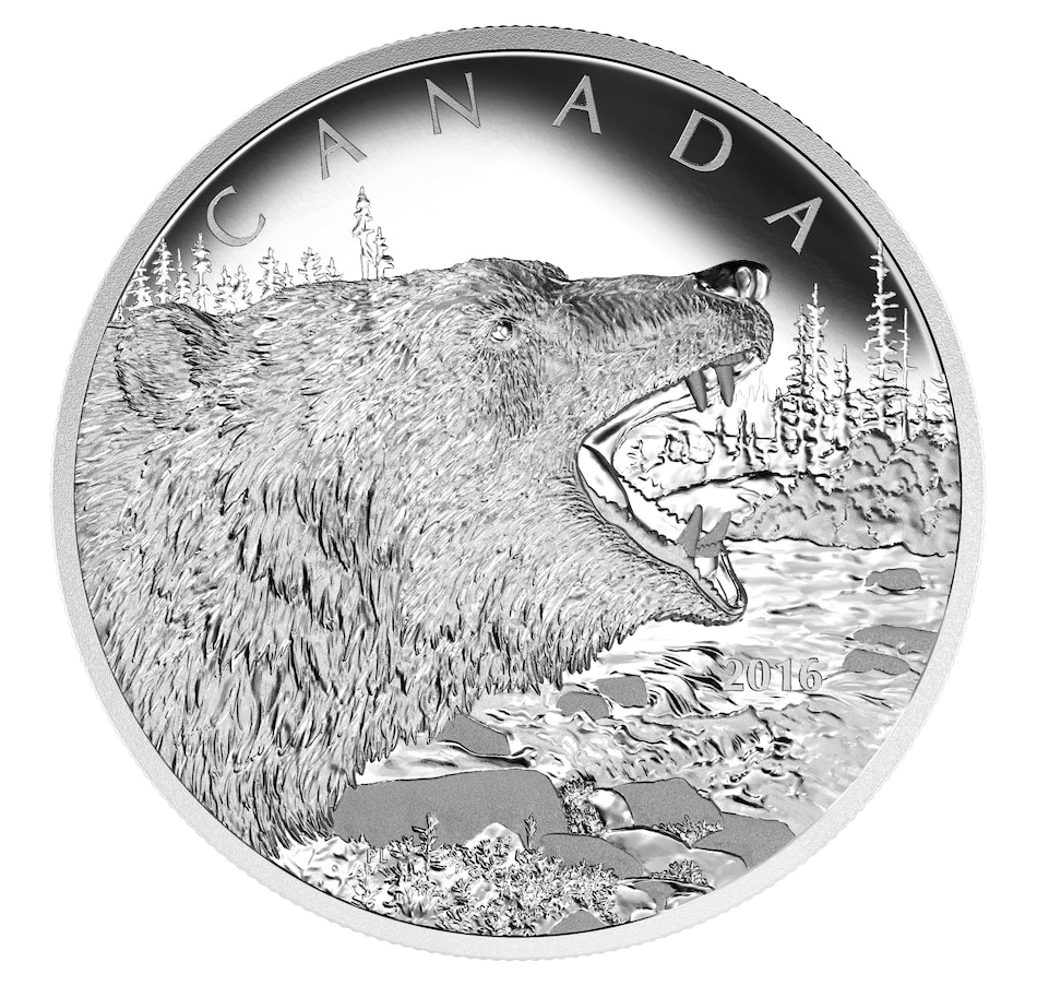 2016 $125 Proof Fine Silver Coin - Roaring Grizzly Bear