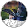 This $10 fine silver common loon is the first coin in a Canada 150 series. It is double-dated "1867–2017" and weighs just over a half-ounce of pure silver. The coin is based on an image by Canadian nature photographer Jim Cumming and features the common loon. The loon glides over the glassy surface of water, tilts upwards in the water stretching its wings. The use of colour recreates the qualities of the original photographer, capturing the loon in fine detail. Its jet black head, unique black and white collar, and checkered plumage are captured in vibrant colour.