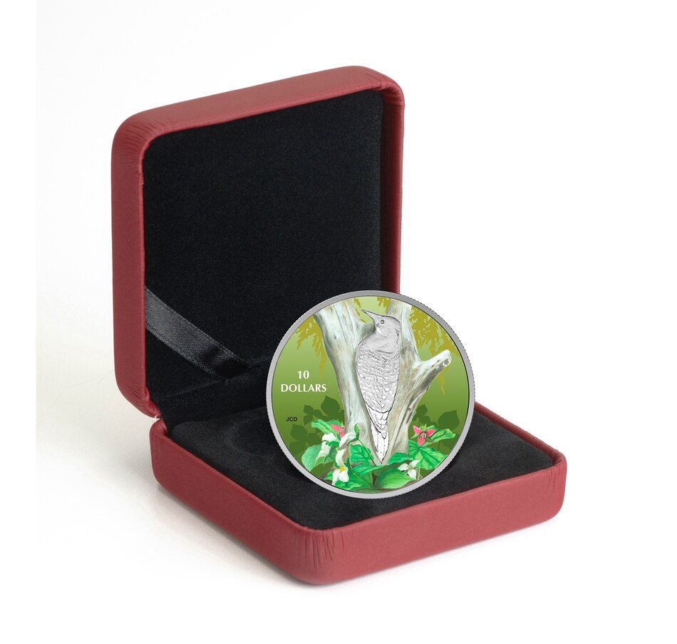 This 2017 $10 pure silver coin features selective colouring to recreate the Northern Flicker’s habitat, with finely detailed classic engraving that enhances all of the fine details. The front of the coin is engraved with the face value of “10 DOLLARS.” As a pure silver coin struck by the Royal Canadian Mint, this item is HST/GST exempt.