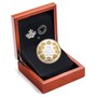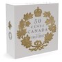 The coin presents a meticulously engraved recreation of the crossed maple boughs originally designed by L. C. Wyon and later modified by W. H. J. Blakemore, which appeared on Canada's 50-cent coins before 1937. The boughs of 22 leaves and the imperial state crown (the solid gold coronation crown) are all beautifully enhanced by the selective application of gold plating, which adds a sumptuous golden hue that stands out against the mirror background. Complete with its serrated edge, this coin also recreates the engraved face value "50 cents" and the word "Canada," and features the commemorative dates "1917–2017" to honour the centennial of the 1917 issue. The selective gold plating continues on the obverse, which features the effigy of King George V by Sir E. B. MacKennal.