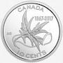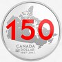 This coin Bears the official Canada 150 logo of a maple leaf mosaic, which represents Confederation. The tie that binds these coins is this logo; its mosaic of 13 triangular shapes—one for each province and territory—evokes memories of the 1967 emblem.