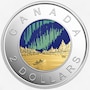 "Dance of the Spirits" celebrates the wonders of Canada with a design featuring the spectacular aurora borealis. The coin depicts paddlers gliding across a placid lake under the shimmering curtain of the Northern Lights, which the Cree peoples called "the dance of the spirits."