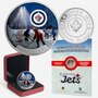 This special-issue half-dollar coin celebrates the 2011 return of the Winnipeg Jets. The coin is double dated "2011/2012" and features the team logo, with a powerful image of a military jet in the centre.