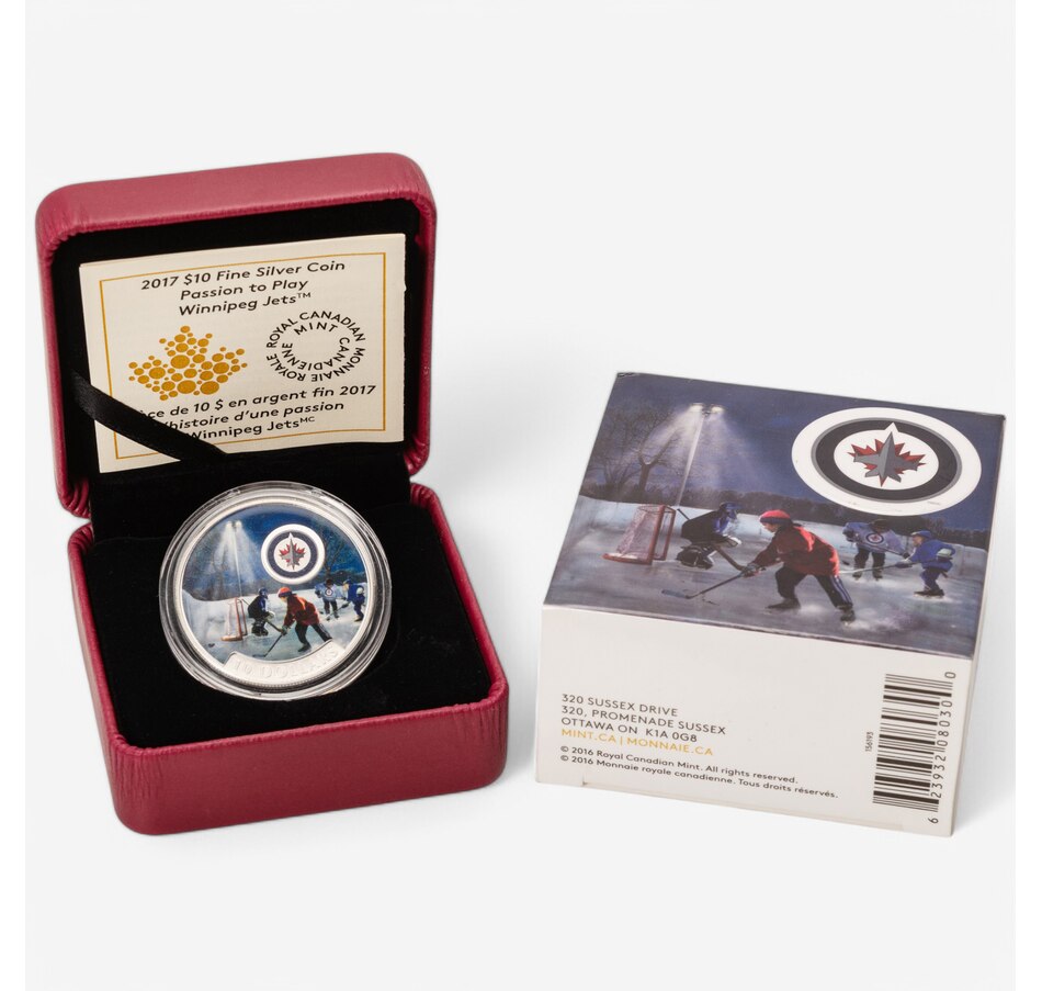 2017 Winnipeg Jets $10 Fine Silver Coin Passion to Play plus Bonus Winnipeg Jets 50-Cent Coin