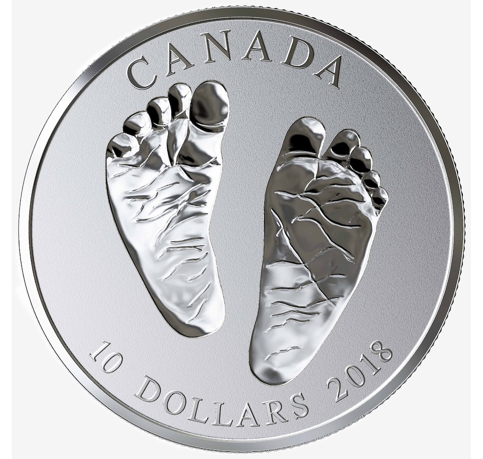 This $10 fine silver Welcome to the World coin is one of the few gifts or keepsakes one can buy for a baby that will last and be appreciated for years to come, even as they become an adult. The coin features an adorable image of little baby's feet—a treasured memory of parents, and now an enduring treasure for parents and child struck in a half-ounce of pure silver by the Royal Canadian Mint. Collectability of this coin is also enhanced by a limited mintage of just 20,000 pieces. The packaging includes a specially designed certificate of authenticity that can be personalized with your own message.