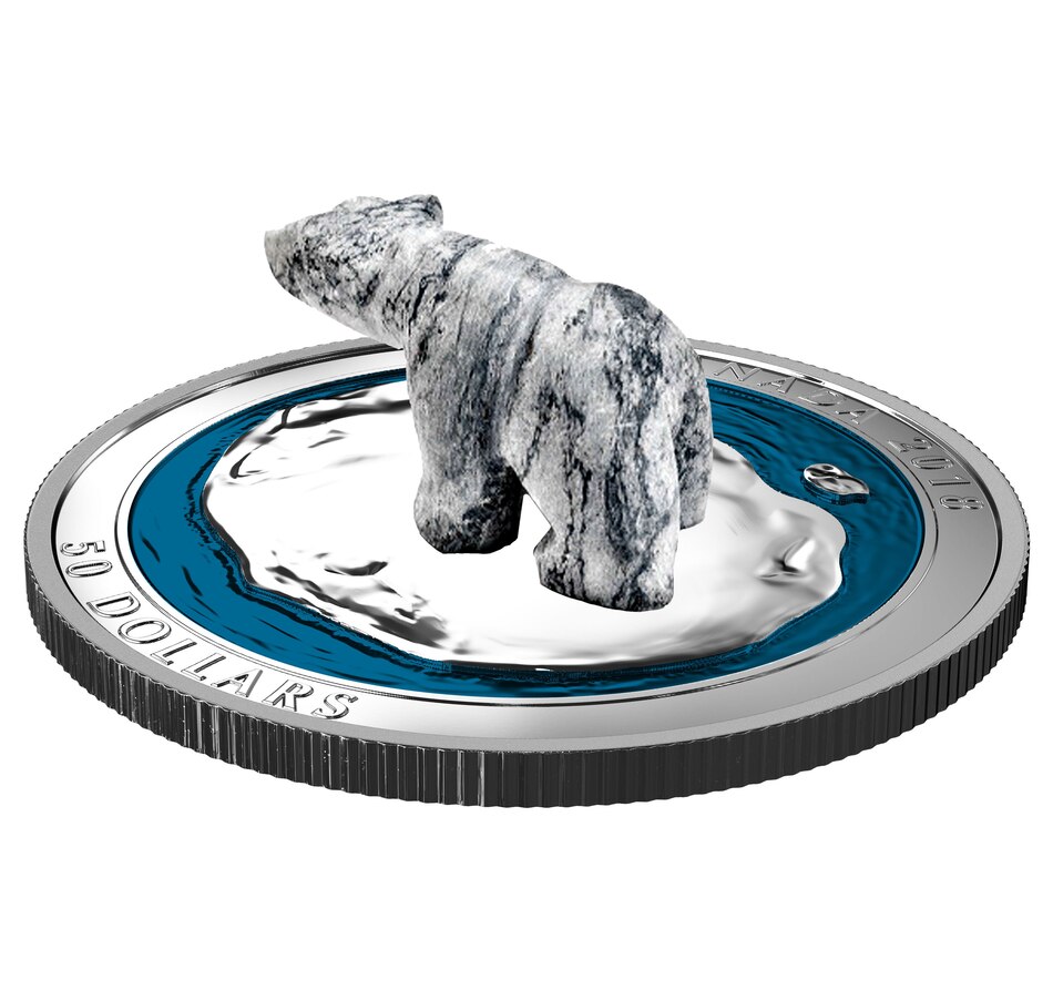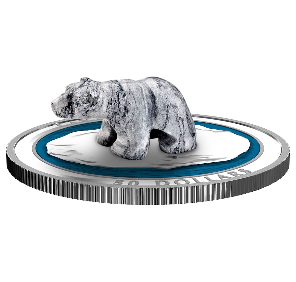 Includes: • 2018 $50 Polar Bear Soapstone Sculpture Fine Silver Coin