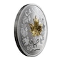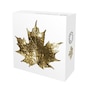 Artist Trevor Tennant offers a modern take on Leonard C. Wyon's classic maple boughs, as they appeared on various denominations of Canadian circulation coins issued between 1858 and 1936. Two crossed boughs of Acer saccharum are bound together by a ribbon bow and framed by small denticles that line the rim. The maple-themed celebration is enhanced with a gold-plated sugar maple leaf on the coin's surface. The word "Canada" and the face value "15 dollars" are also engraved on the reverse. The obverse features the effigy of Her Majesty Queen Elizabeth II by Susanna Blunt.