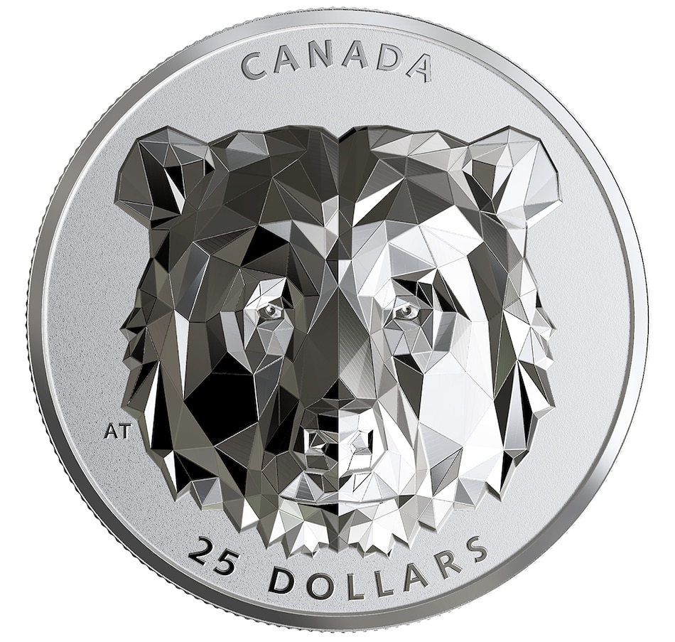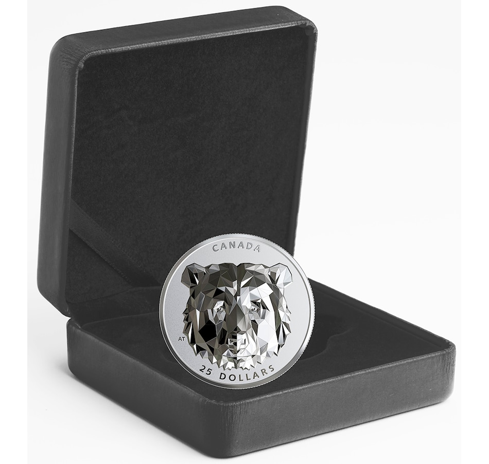 • 2019 One-Ounce $25 Fine Silver Multifaceted Animal Head - Grizzly Bear