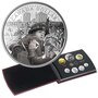 June 6, 1944 will forever be remembered as "D-Day," and this commemorative silver dollar marks the 75th anniversary of the historic landing of Canadian soldiers on Juno Beach as part of Operation Overlord. Through extreme bravery of Canadian and other Allied forces, the successful landing on the beaches of Normandy, France would quickly turn the tide of the war. This 2019 fine silver dollar re-creates a moment caught on film when the North Shore (New Brunswick) Regiment landed on the Nan Red portion of Juno Beach. Canadian infantry soldiers are seen in full battle gear as they disembark from a landing craft assault vehicle and make their way to the beach and into heavy enemy fire. In the foreground, one soldier looks back at the viewer, and a hand is on the soldier's back in a gesture of encouragement as the soldiers follow each other into the low Atlantic tide. In the sky above the letter "V" for "Victory" appears in Morse code.