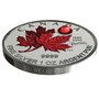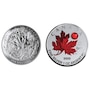 All five coins feature the same maple leaf-themed reverse design by Lisa Thomson Khan. The double dates "1980–2020" mark the 40th anniversary of the National Anthem Act, which designated "O Canada" as the national anthem of Canada. On the one-ounce coin, the engraved cluster of three maple leaves is tinted with a red colour. The large coin is distinguished by three additional features: a red Swarovski element; edge lettering to commemorate the official proclamation date ("01.07.80"); and an engraved musical staff with the opening notes of "O Canada."