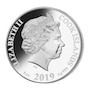 The intricate design, engraved in light pink mother-of-pearl, presents an image of a sweet little pig. The obverse of the coin features the effigy of Her Majesty Queen Elizabeth II and the inscriptions "Cook Islands," "2019," "5 oz Ag 999," and "Elizabeth II."