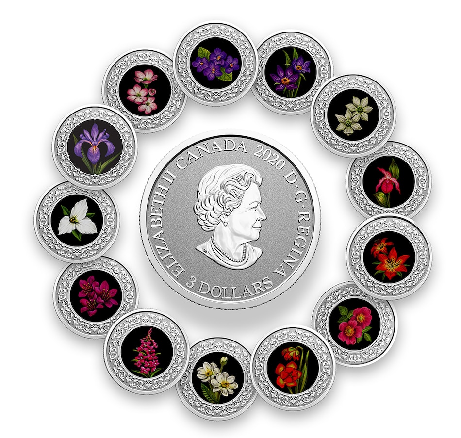 The maple leaf is Canada's most famous botanical icon on a nation level, but every province and territory also has its own official floral emblem, too. These 13 flowering symbols are the featured stars of the new Floral Emblems of Canada series. Styled like vintage silver jewellery, each coin highlights the diverse beauty of the floral emblems that grow in Canada, and outlined individually below: