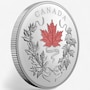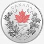 Canada's arboreal emblem consists of not one but 10 different maple species, reflecting how Canadians be share a common identity while maintaining our diversity. The engraved design features a clockwise swirl of Canadian maple leaves, each one different from the other and held together by a ribbon that ends in a bow. To top it off, the coin includes selective touches of red and white—Canada's official colours since 1921—to transform this arboreal anniversary piece into a dual celebration of national symbols.