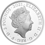 The reverse features a symbolic design by British heraldic artist Timothy Noad. Behind the royal cypher, the Queen's royal heritage and symbols of the British nations are represented by a posy filled with thistles, daffodils, roses and shamrocks. The reverse also bears the inscription, "My heart and my devotion," referencing a promise the Queen made in her 1957 Christmas speech and has kept ever since. The obverse features the effigy portrait of Her Majesty by Jody Clark.